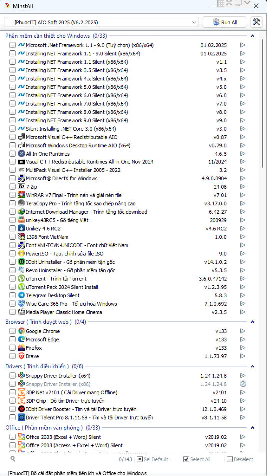 AIO Soft dạng phần mềm Silent & Repack cho Windows để cài nhanh các phần mềm cần thiết cho Windows khi mới cái Windows mới với các ứng dụng phổ biến hay dùng cho Windows và các ứng dụng tiện ích như đồ họa, thiết kế, multimedia….tất cả dưới dạng đã kích hoạt sẵn. Yêu cầu tắt Defender khi sử dụng