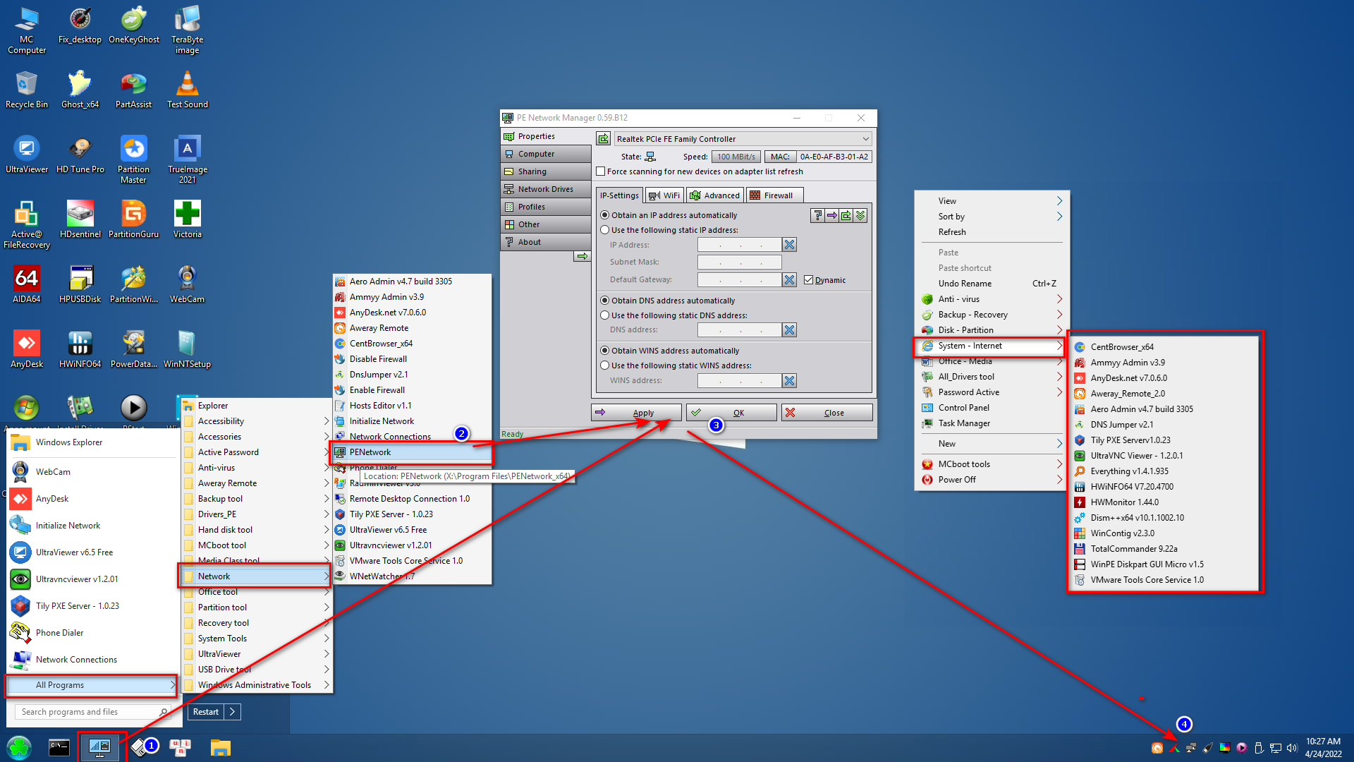 – Win Pe bao gồm: PE Win 11 pro x64, Win 10 pro x64, Win 10 pro x86, Win 8.1 pro x86, với đầy đủ các phần mềm cứu hộ trên Mini Windows: Acronis TrueImage, Norton Ghost, Partition Wizard, Aomei Partition, Partition Guru …