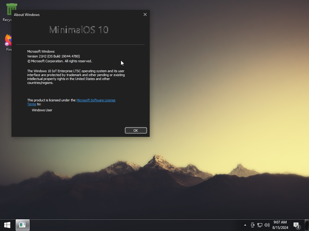 MinimalOS – Windows 10 LTSC 2021 v21H2 Build 19044.4780 là bản dựng Windows 10 LTSC 2021 được tùy biến giao diện và tối ưu hóa các thành phần.