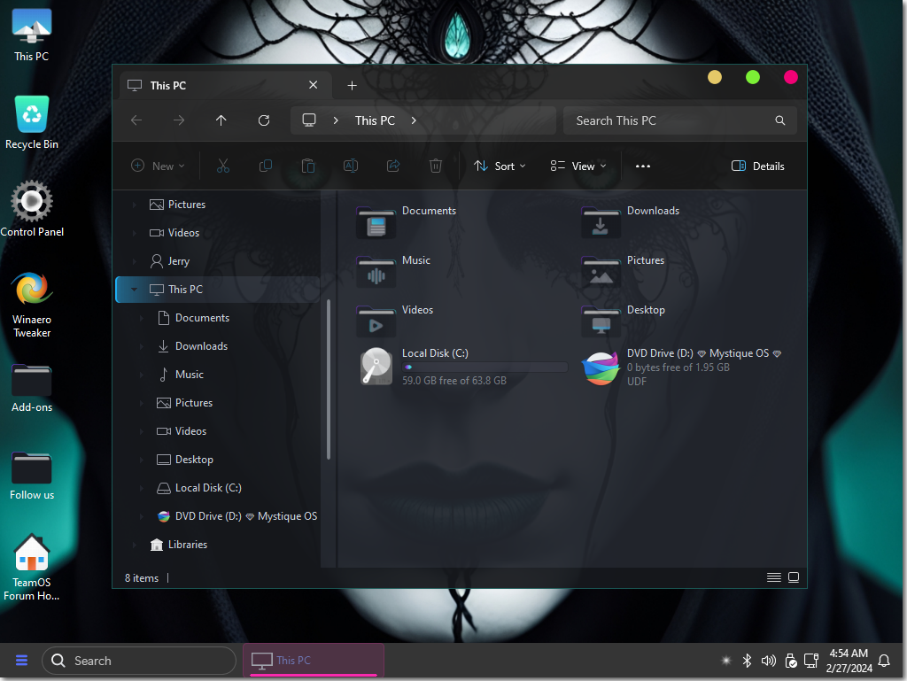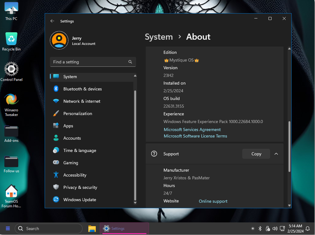 Mystique OS – Windows 11 Lite v23H2 build 22631.3155 by TeamOS là bản dựng Windows 11 Lite 23H2 được tùy biến giao diện và tối ưu hóa cho máy cấu hình thấp hoặc chơi game.