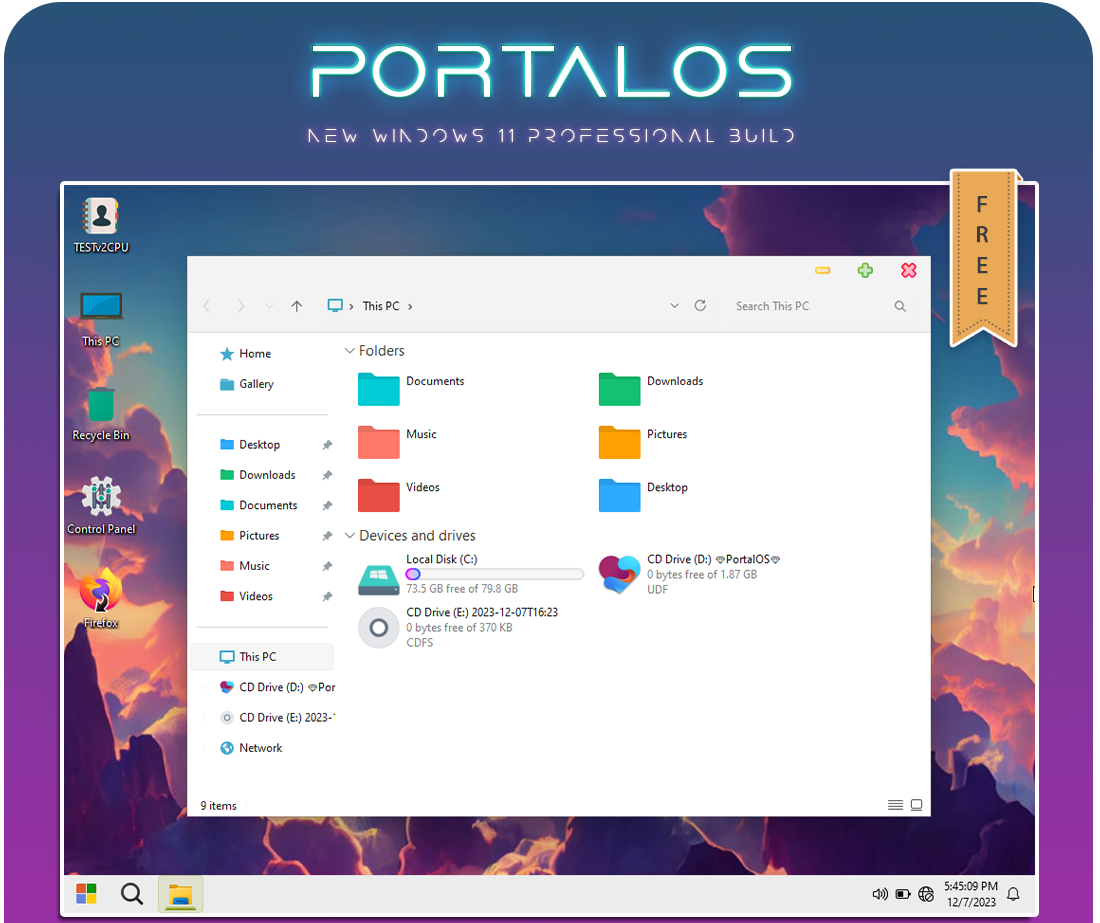 Tải xuống PortalOS – Windows 11 PRO Lite v23H2 build 22631.2787 là bản dựng Windows 11 Lite được tùy biến giao diện và tối ưu hóa cho máy cấu hình thấp hoặc chơi game.